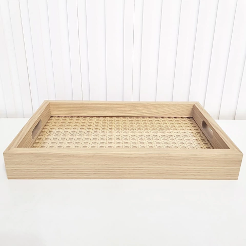 - > Bandeja 20x30cm laminada com fundo palha indiana e vidro
