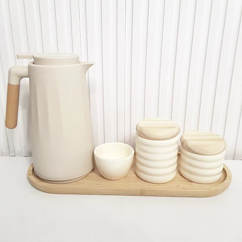 1 Garrafa térmica 1L New Unique bege (nude) - com cabo de bambu - Lyor